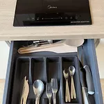 Die Gäste dieser Villa am Strand können ihre eigenen Mahlzeiten in einer kompletten Küche zubereiten.